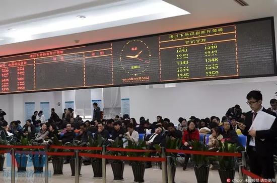 ▲2月底,在上海浦东新区房地产交易中心,排队等候办理手续的购房者在交易大厅内的等候区坐的满满当当。而这一景象基本在全市各区的房产交易中心均能见到。(图片来源:上海青年报-东方IC)