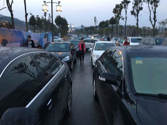 记者了解到,当天有四千游客因此纠纷行程滞留,进不来出不去。车辆堵得一直到三里畈温泉门口的国道上,足有一公里多,直到警方介入交通才恢复通畅。