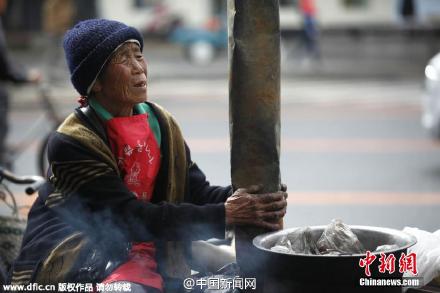 黑龙江八旬老人零下31℃卖茶叶蛋满头冰霜(图)