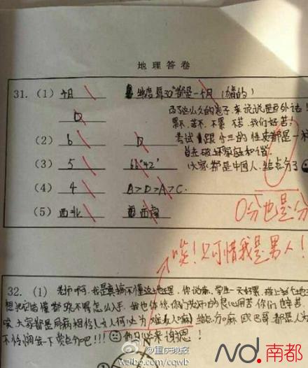 但也要小心剑走偏锋走过了……这个女生给老师留言“女人何必为难女人”,偏偏阅卷老师是个男人……