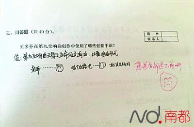 武汉音乐学院的一名学生在试卷上画哭脸求老师给个及格。批改卷子的教授画了个更大的哭脸,说“想送分都送不成啊!”