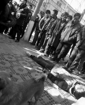 12月27日16时40分,某网络平台曝光了事发现场的照片,图中一名戴眼镜的男孩横躺在人行道上(见图),事发现场围观群众很多,该网帖还将当事车辆甘JA9652发布了出来。