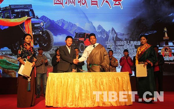 此次文化旅游宣传会上,玉树与来自拉萨、那曲、昌都等地的旅行社签订了旅游合作协议。