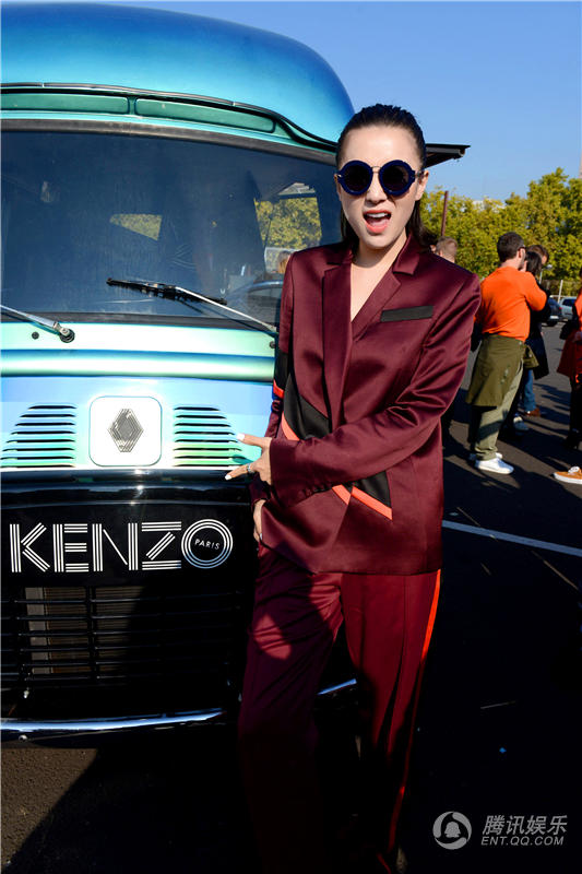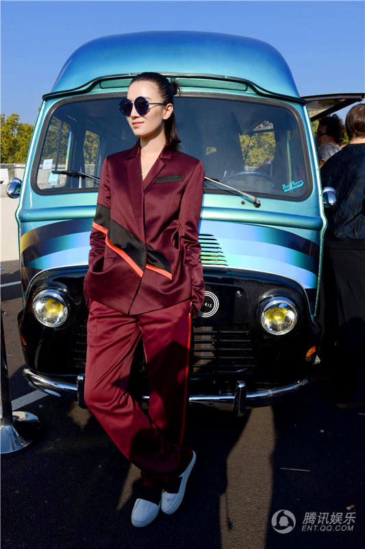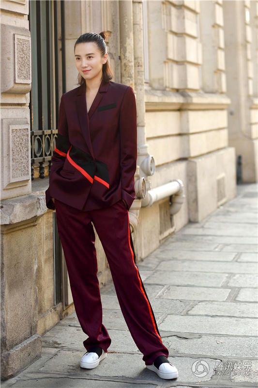宋佳帅气亮相巴黎时装周 西服套装随性潇洒