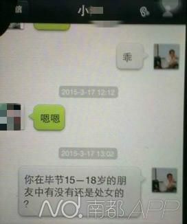 “你在贵州毕节15到18岁朋友中有没有还是处女的?”,日前,贵州省政府发展研究中心副主任蔡福顺被人网络举报其与多人通奸,数十张大尺度聊天记录截图也在网络流出