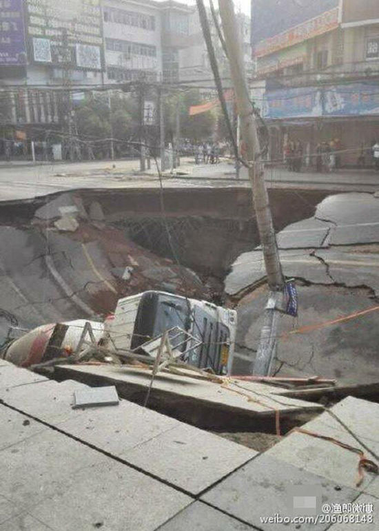 (原标题:安徽定远:街面坍塌100多平米 警察屋掉入深坑)