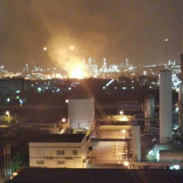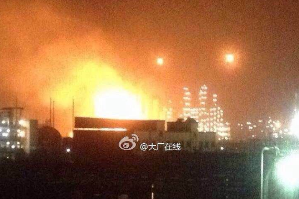 最新:目前明火燃烧高度约15米,经确认现场为环氧乙烷装置发生爆炸起火,并引燃周边三个醇类储罐(共6个,目前3个未起火),每个罐体容量约1000立方米,目前火势呈稳定燃烧状态,移动炮等固定消防设施正在出水降温,阻止蔓延。![]()