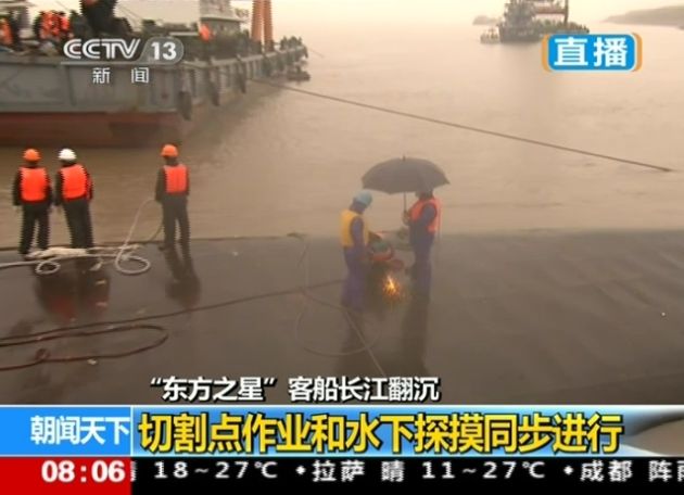 央视新闻:【东方之星沉船事故已致65人遇难】①从昨晚21时至今晨8时,现场新发现39具遇难者遗体。截至8时,共搜救到79人,14人生还、65人遇难。②昨天第一个切割点已打开,没有发现幸存者。③今天依次展开三个切割点作业,切割点作业和水下探摸同步进行。