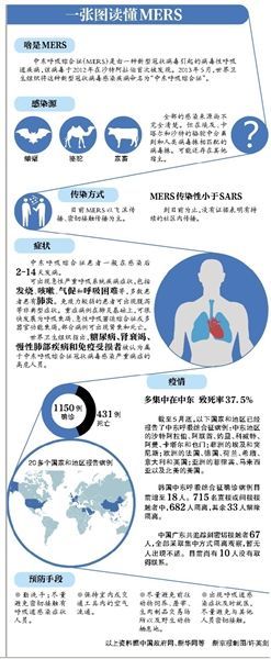 中东呼吸综合征(MERS)是由一种新型冠状病毒引起的病毒性呼吸道疾病,该病毒于2012年在沙特阿拉伯首次被发现。2013年5月,世界卫生组织将这种新型冠状病毒感染疾病命名为“中东呼吸综合征”。