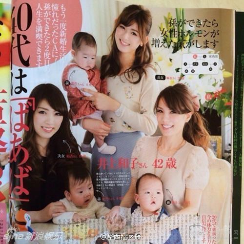 新浪娱乐讯日前,日本美女井上和子爆红网络,42岁的她身材风姿如少女,却已当上外婆,享受到了三世同堂的天伦之乐,让围观网友羡慕不已。