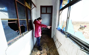 大图为刘寨镇刘寨村道路被毁。小图为村民杨全德的女儿在家里被砸破的窗户前。新华社发