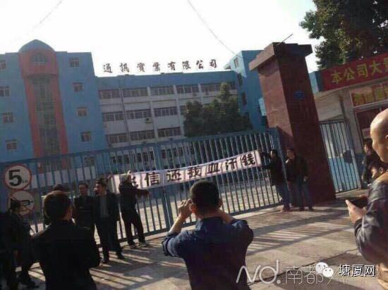 今日上午,位于塘厦镇宏业工业区的“东莞市兆信通讯实业有限公司”,员工围堵门口讨薪。图片来源于网络