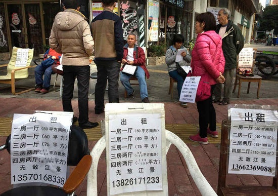 拥有多套房子的村民自发形成“村内部房屋中介”,每天搬着小板凳在村口等着放租。