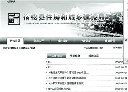 □网友访问安徽宿松县住房和城乡建设局网站,发现网站竟滚动播放“今天心情非常的不好”的字幕。