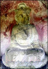 记者看到,每窟中均有佛像一尊,大小不一,结跏趺坐于仰莲座上,施禅定印。最大的佛像高达140厘米,小的仅有头部露出地面。石窟的窟门均雕刻成火焰状