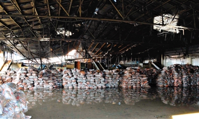 11月17日,山东寿光火灾事故现场扑救结束。11月16日晚,山东寿光龙源食品有限公司一胡萝卜包装车间发生火灾,事故已致18人死亡,13人受伤。新华社记者范长国摄