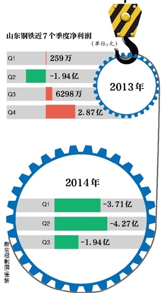 但好景不长,今年以来,钢铁业严峻形势更胜去年,该公司1-3季度分别亏损1.94亿、4.2亿、3.7亿,年内扭亏无望。