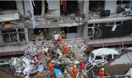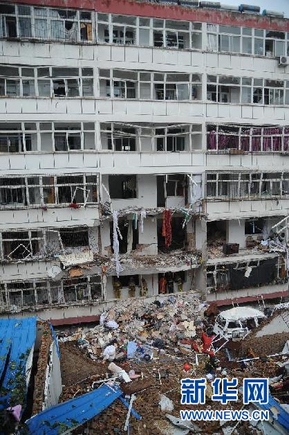 据爆炸现场图片显示,事发所在居民楼整面墙上所装玻璃基本都被震碎,数层楼多家住户阳台被炸碎。