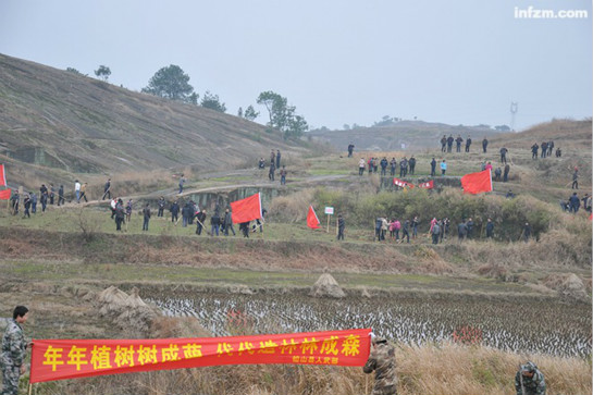 | 2013年的正月初七,江西省铅山县千余机关干部忙着植树 |