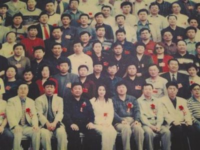 2002年5月,刘迎霞参加黑龙江省工商联第八届会员代表大会时的留影(部分),前排正中白衣女性为刘迎霞。胡涵摄