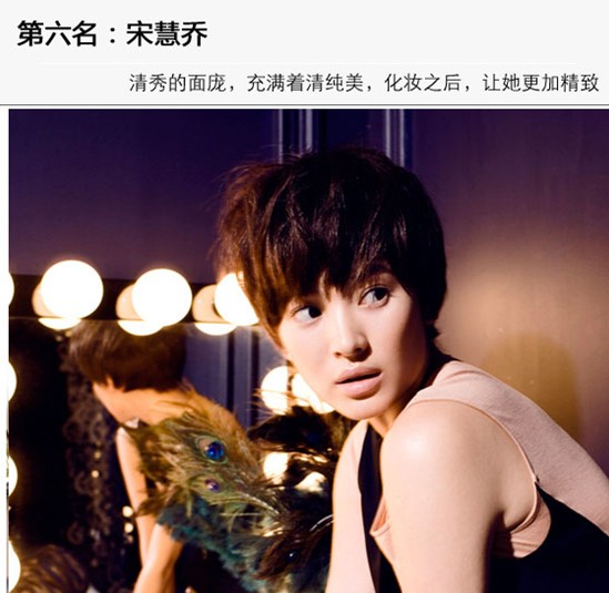 1982年11月22日出生于大邱广域市,韩国影视女演员。1996年,宋慧乔通过模特大赛出道。全智贤散发着独特的魅力,展现出神秘美,素颜的照片里,清秀的面庞,充满着清纯美,化妆之后,让她更加精致,眼妆只需画上细细的眼线,涂上睫毛膏即可,涂上裸色的唇彩,让她更有魅力。