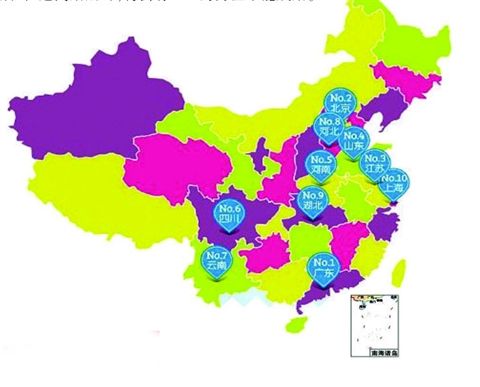 “光棍榜”评选出了中国盛产光棍的十大地区,分别为广东、北京、江苏、山东、河南、四川、云南、河北、湖北和上海。据介绍,光棍盛产与各地的生活习惯、工作压力、男女比例、价值观等因素密切相关。