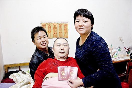 丈夫遭遇车祸瘫痪在床,谷城女子杨玉琳一边打工养家,一边照顾丈夫,8年来从未放弃。丈夫不忍心连累她,多次劝她改嫁,并以绝食相逼。最终,杨玉琳决定带着前夫改嫁。新婚丈夫承诺照顾其前夫一辈子(如图)。