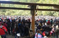 管理人员说,部分游客可能因没有赶上公交车,导致交通线路瘫痪,拥堵数公里长。景区一度出动武警维持秩序。