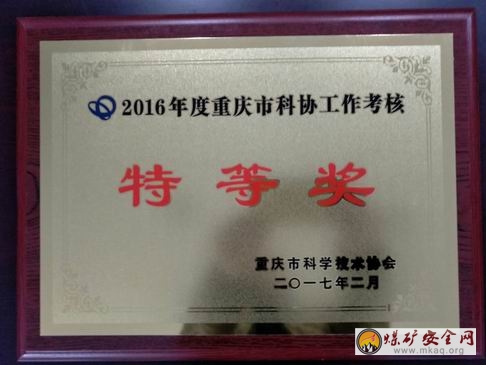 2017年2月14日,在重庆市科协四届十一次全委会上,市煤炭学会被授予了2016年重庆市科协工作考核特等奖的牌匾,成为全市12个特等奖市级学会之一。这是该会继2015年度获市科协工作考核特等奖后继续保持的荣誉。
