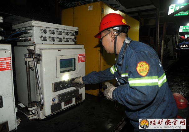 图:该矿青监岗员正在井下8202智能化综放工作面对机电设备进行防爆检查