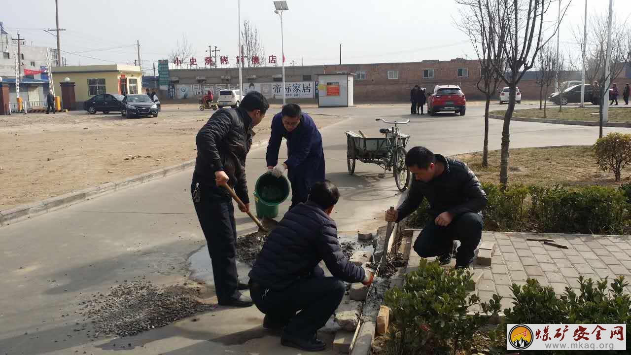近日,西荷小区路边道牙处出现裂缝现象,小区工作人员第一时间赶到现场,对地面裂缝处进行水泥灌浆,图为工作现场。