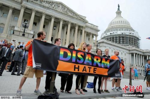 资料图:美国民众在国会外举行支活动支持控枪。