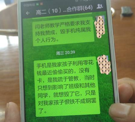 钳碎手机的是一个高二学生家长的母亲,我理解她不理智举动是对孩子行为极度失望与出离愤怒的心情;我感受老师对于屡次劝阻学生不玩手机的无奈;我更可怜孩子面对自己最爱的亲人与最尊重的老师被示众羞辱的难堪。