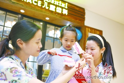 小朋友在深圳一家诊所学习爱护牙齿知识。 南方日报记者 朱洪波 摄