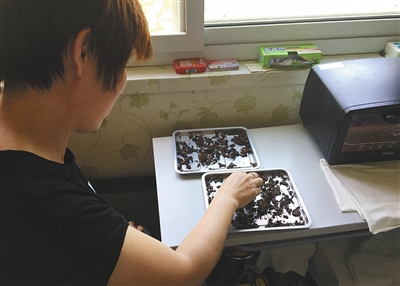胎盘倒卖者正在检查胎盘切片是否已被彻底烘干。