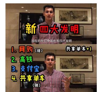 近日,北京外国语大学发起了一次留学生民间调查,来自“一带一路”上的20国青年票选出了心中的中国“新四大发明”:高铁、网购、支付宝和共享单车,这也是他们最想带回祖国的生活方式。(据5月15日《每日经济新闻》)