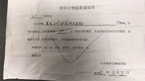 据了解,不关水龙头罚50元,玩手机罚100元,近日,广西宜州市山谷高中针对学生罚款规定遭网友质疑。昨天,记者从该校获悉,2015年7月1日至2017年4月19日,学校共收56450元罚款,学校将按照宜州市教育局整改要求退还学生家长。(5月10日新京报)