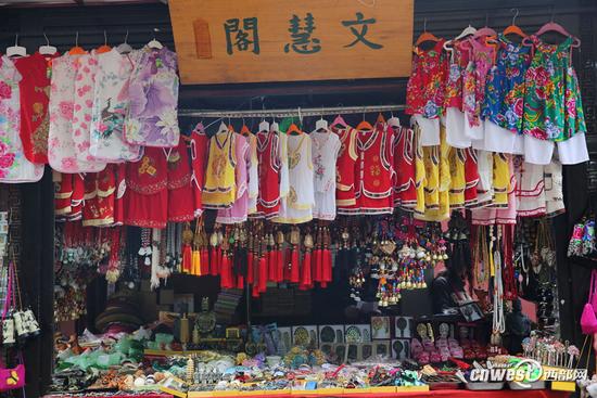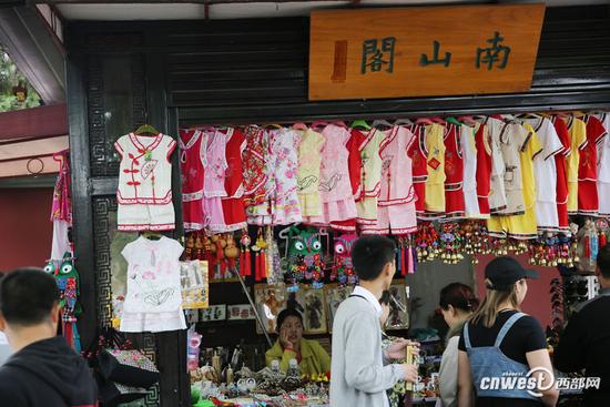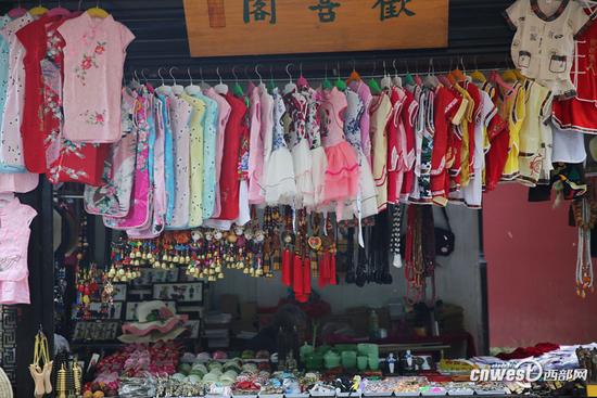 5月3日,西安大雁塔景区,大雁塔东侧30来个商亭关了2个月后又开张了,这些商亭大多都挂着儿童服装和铃铛,拍了十多张照片,除了店名不一样几乎都一样,就像同一张照片。难怪有网友吐槽:为什么大好河山卖的多是“地摊货”!(5月4日西部网)