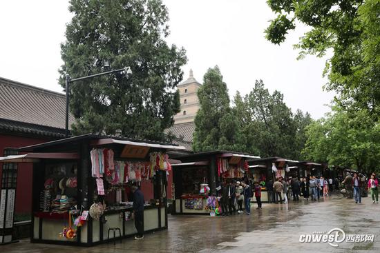(大雁塔景区众商亭卖的都是一样的货,拍了10多个就像一张照片。图片来源:西部网)