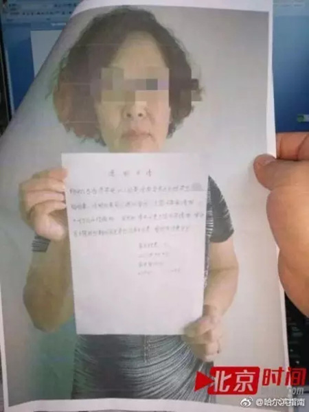 家长手举请假声明(微博截图)。 图片来自“Btime此刻”微信公号