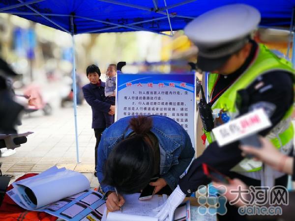 4月11日上午,郑州警方治理交通乱象之专项整治“中国式过马路”移师交警一大队辖区。与以往常见的登录个人信息、戴上小红帽被罚执勤的处罚形式不同,交警一大队又创新了新的处罚形式,在其大队微信公众号上答题,答对五道题后自己要拍照上传朋友圈。(4月12日新华网)