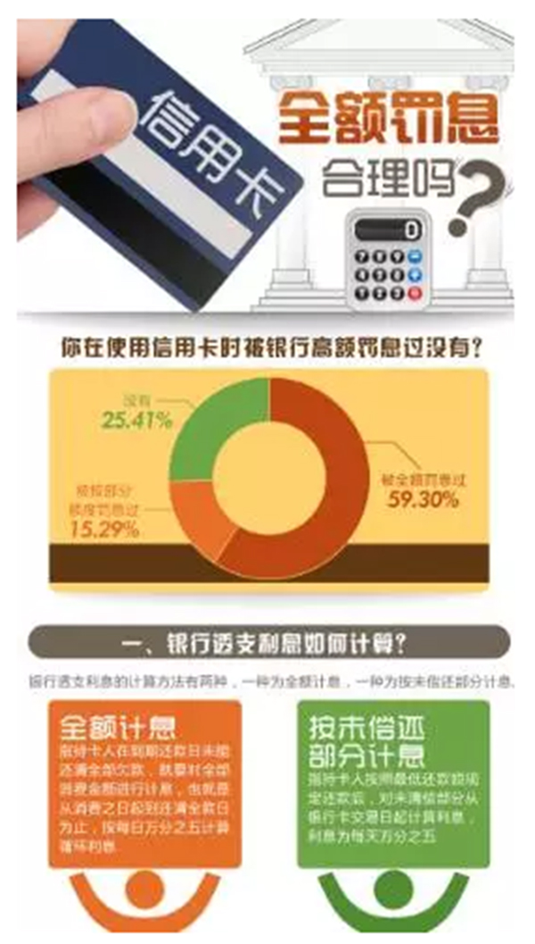 简而言之,缺乏法律法规授权的信用卡全额罚息不公平不合理。有关部门势必予以规范或清理,一是实行总额控制,无论标准高低,项目繁简,名目多少,违约金或罚息总额不得超过相应标准,如不得超过年利率36%这一民间借贷利率的上限。二是明确告知义务,要求银行以显著字体书面告知持卡人各项义务,否则不得主张相关权利。这样才能防止银行店大欺客,让持卡人公平、明白、无忧地体验信用卡业务。