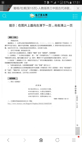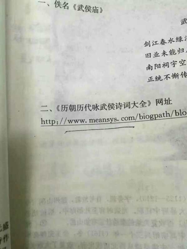 这本“传播”黄色网站的书籍是《中国古代诗歌散文欣赏》,书中介绍,该书是根据《普通高中语文课程标准(实验)》编写的一本选修课教科书,它是与人教版《普通高中课程标准实验教科书·语文》相配套的。这个黄网址链接出现在第15页,却被标注为“二、《历朝历代咏武侯诗词大全》网址”。同时,这本教材也在电子课本网上,其影响可见一斑。