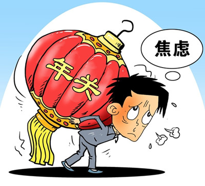 受访者的焦虑感主要体现在经济压力(62.9%)、工作压力(51.0%)、人际关系(32.3%)三方面,表现年末焦虑与其他焦虑有共性的一面,也有个性的一面。所谓共性,就是任何时候,没有钱的人在经济上的压力总会比有钱的人承受的要多一些,并不以年关这个特殊时刻而改变,工作压力、人际关系压力也不是仅仅年末才会有;所谓个性,就是年末岁初,由于要面对父母家人,在朋友同事聚会时要展示一年来的成果,有钱没钱,钱囊决定行囊,腰包决定红包,拿不出手注定会成为“矮子”,说话行事缺乏底气。