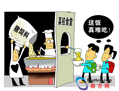 近日,有山东烟台海阳市民反映,烟台海阳一学校食堂存放猪饲料、鸡饲料,用来给学生熬稀饭喝,给学生吃猪食、淋巴肉等问题食品。有上百名家长到学校讨说法,并向当地政府部门投诉举报。(10月11日《齐鲁晚报》)