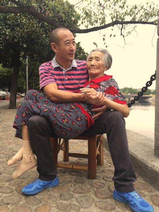 最近,一张摄自浙江永康江边、52岁儿子“像抱着婴儿”一样,抱着82岁母亲的照片,在朋友圈传播开来,不少人看了表示非常感动。郁郁葱葱的树荫下,一位眼角带着鱼尾纹男子的怀里抱着一位老人。他安静地坐在一张竹椅上,望向远方的眼神温柔,身后是波澜不惊的永康江水。男子叫张永康,他说:“小时候妈妈就是这样抱着我的,我想抱着妈妈老去”。(9月22日《金华日报》)