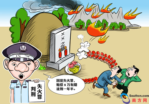 2015年4月5日,何某全(男)及其家人去到清远市清城区源潭镇新马村委会“鱼仔坑峡山”的祖宗坟地祭祖。当天15时许,在清理完坟地的杂草后,何某全及其家人便在坟前摆设祭品,燃烧纸钱,并在坟头到坟顶边按半环形摆放了长卷鞭炮,用香烟点燃,一些燃烧的鞭炮突然弹射出去引燃了坟头上方的杂草。见此情况,何某全及其家人立即用铁铲等工具进行扑救,但因火势太大无法扑救,引发山火。山火直到4月8日凌晨3时许才被全部扑灭。经鉴定,此次山火过火总面积为1131.77亩。(4月1日《清远日报》)
