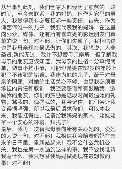傅艺伟儿子替母亲道歉