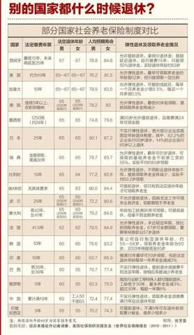 人力资源社会保障部部长尹蔚民介绍,我国现在是世界上退休年龄最早的国家,参加企业职工养老保险的退休人员是8000多万,平均退休年龄不到55岁。除了非洲的一些国家之外,大多数国家都是在65岁、67岁。