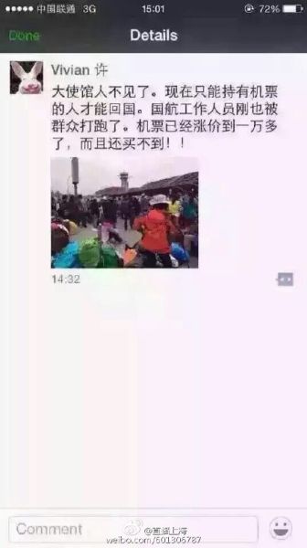 加德满都至国内的机票票价炒至13000,这恐怕不是谣言,微博、微信上有多名网友提及昂贵的票价。